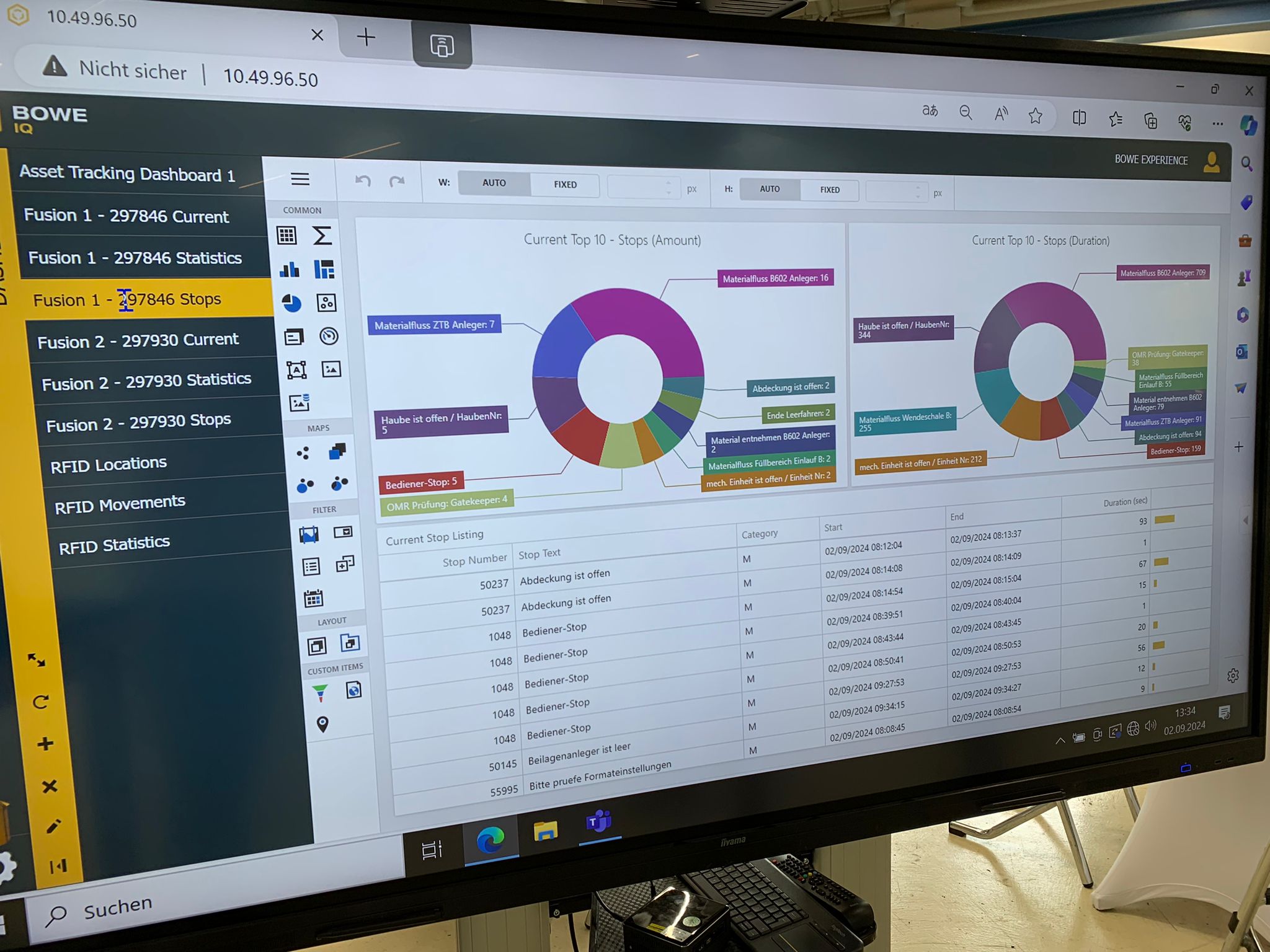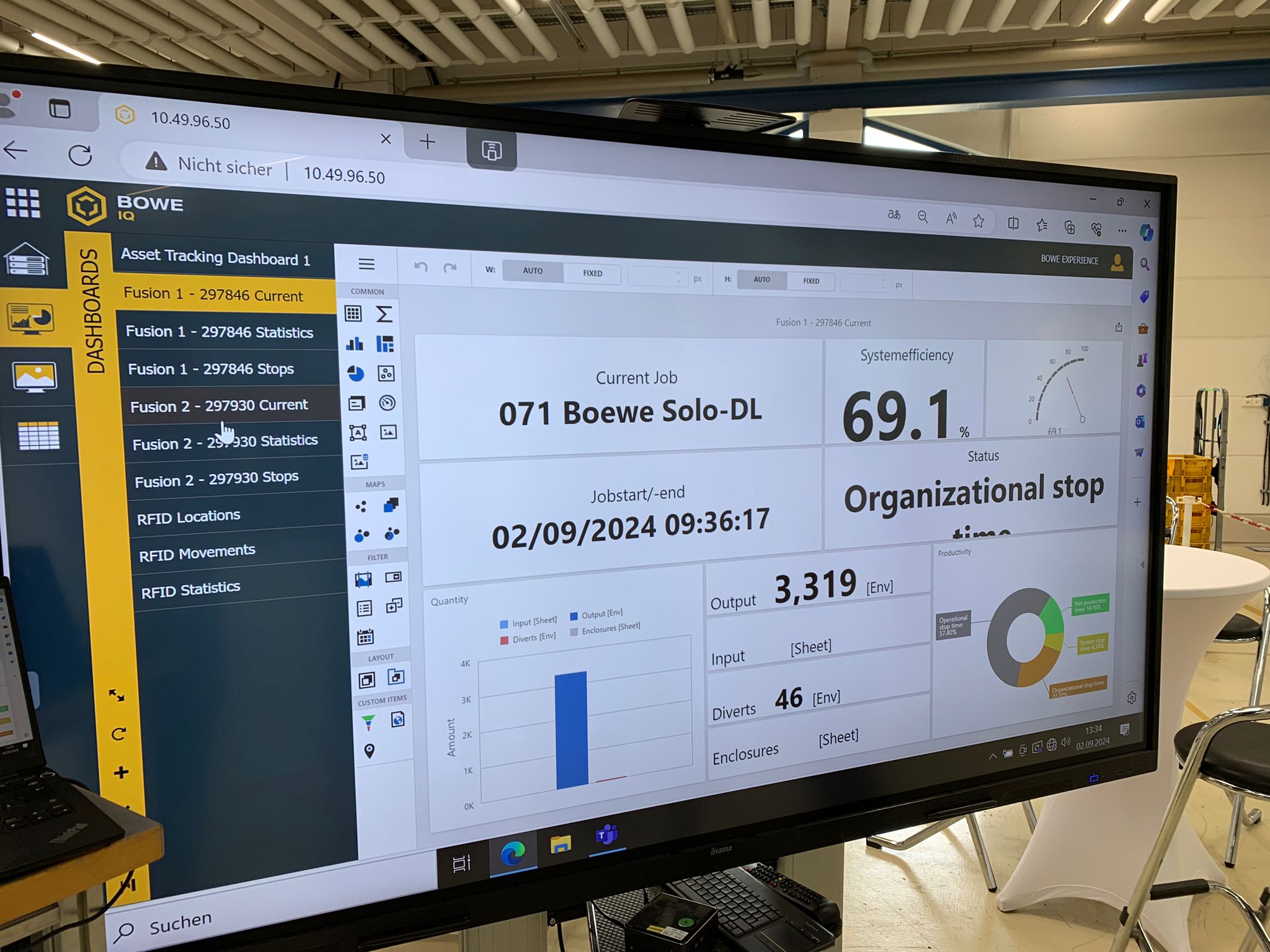 Integrámos na BOWE IQ um sistema de orientação do trabalhador e posso dizer que o estamos a usar nós próprios na nossa fábrica em Augsburg, mas também temos clientes no setor automóvel, que já estão a tirar partido deste tipo de solução. Sobre o seu funcionamento e sendo mais concreto, eu agora estou aqui em Lisboa, mas tenho a possibilidade de ir ao meu telemóvel e ver o que se passa em Augsburg, na Alemanha, na fábrica, e consultar em tempo real os dados do armazém, ou os tempos de produção, o rendimento… e posso tomar decisões ao momento, mesmo não estando no local. Por outro lado, é uma solução flexível porque eu posso escolher o que quero ver, mudar as visualizações, selecionar os KPI a que quero ter acesso: quero ter um diagrama circular do lado direito ou preciso de um número específico para poder tomar decisões em tempo real? É só escolher, em função da necessidade. Portanto, um ambiente completamente flexível e aberto às necessidades do mercado.