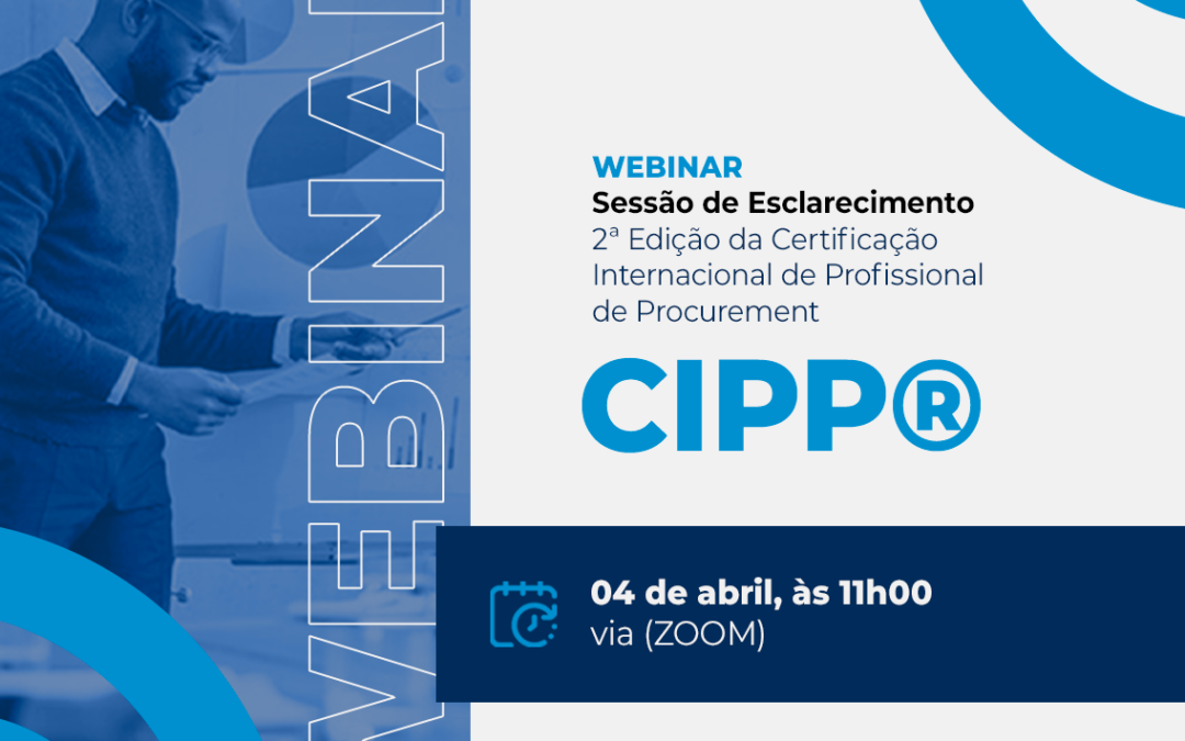 No próximo dia 4 de abril, às 11h00, realiza-se um webinar gratuito dedicado à Certificação Internacional de Procurement – CIPP®. O evento é uma excelente oportunidade para profissionais da área esclarecerem dúvidas e conhecerem os benefícios desta certificação reconhecida internacionalmente.