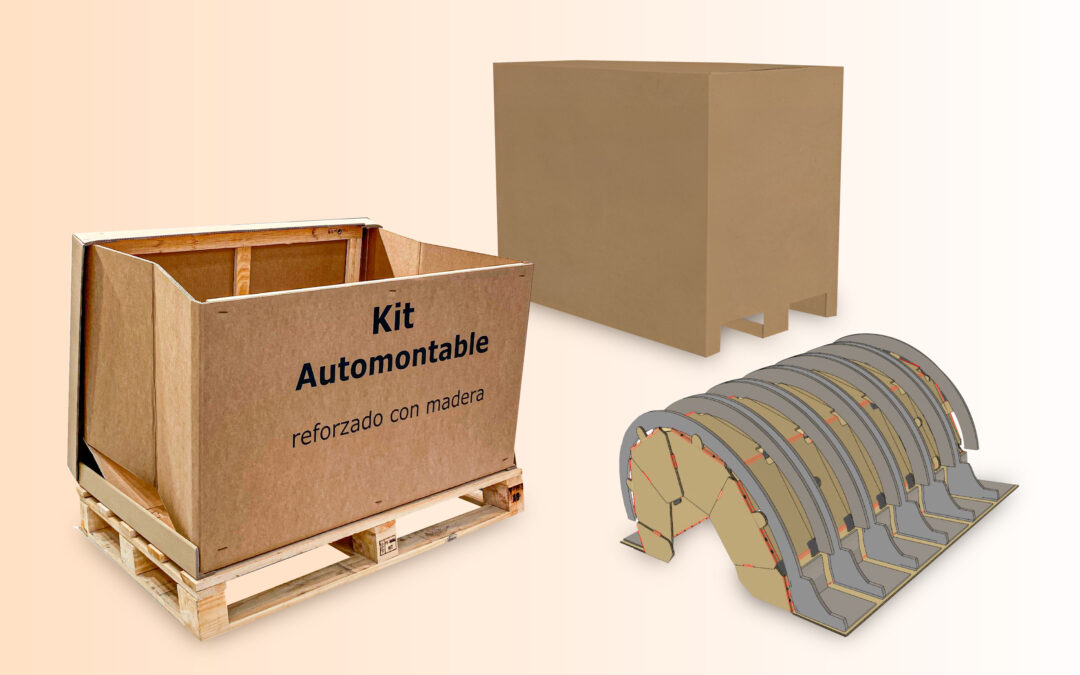 A Box Pallet surge como alternativa à palete tradicional, combinando palete integrada e estrutura laminada de cartão canelado de alta resistência. Capaz de suportar até 200 kg empilhados, é fornecida em formato espalmado, não requer ferramentas nem adesivos na montagem e permite personalização consoante os requisitos do cliente. O facto de ser 100% reciclável e monomaterial facilita a gestão no fim de vida e a integração em modelos de economia circular.
