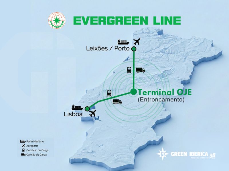 A Evergreen Marine Corporation passou a utilizar o terminal intermodal da OJE Logistics no Entroncamento como ponto interior de movimentação de contentores, reforçando a ligação ferroviária entre o interior do país e os principais portos portugueses.